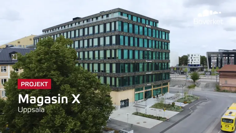 Magasin X i Uppsala är ett exempel på hur klimatberäkningar och krav på materialval och transporter kan bidra till minskad klimatpåverkan. Källare och grund var redan byggda av stål och betong enligt en tidigare plan, men Vasakronan byggde likväl Sveriges största kontorshus med en stomme helt i trä.