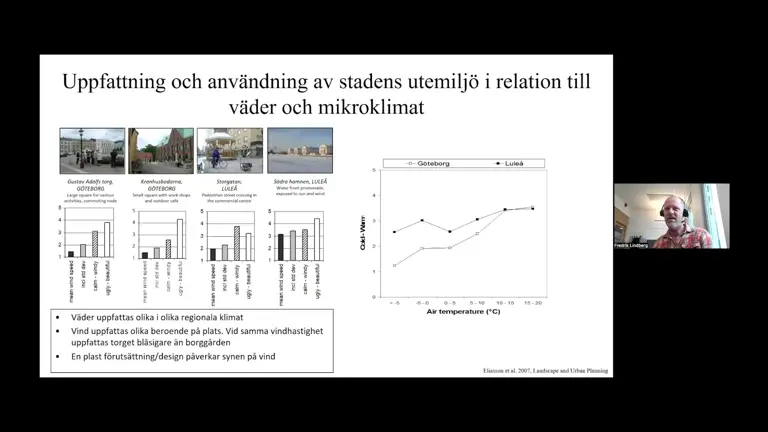 Fredrik Lindberg och Sofia Thorsson vid Göteborgs universitet skriver i artikeln ”Det urbana klimatet - bebyggelsens påverkan på utomhusklimatet”, om vikten av att ta hänsyn till mikroklimatet tidigt i planeringen. Detta för att minska oönskade klimateffekter i den byggda miljön och skapa hälsosamma, attraktiva och hållbara miljöer för dagens och framtidens invånare. Den betydelse som bebyggelsestrukturen, men också vegetationen och materialvalen, har på mikroklimatet lyfts. Utifrån forskningen beskrivs också vad vi kan tänka på för att förbättra mikroklimatet i den redan byggda miljön.