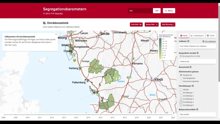 Segregationsbarometern är ett verktyg som gör det möjligt att visualisera, analysera och följa segregationens utveckling över tid.